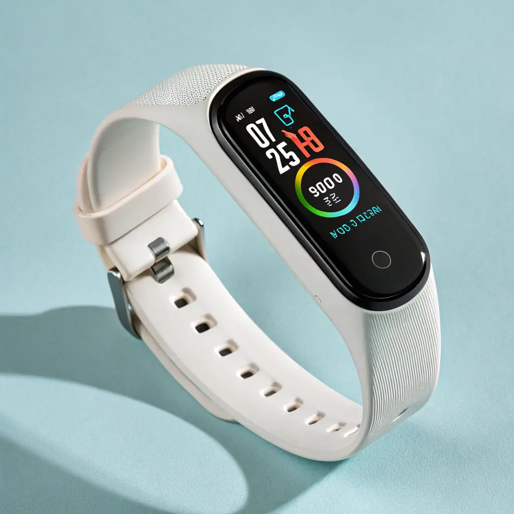 This sleek smart fitness tracker band features a slim, lightweight design with a vibrant OLED display. It tracks steps, calories, sleep patterns, and activity levels with high accuracy. Made from soft, durable silicone, it offers all-day comfort and seamless connectivity with mobile devices. Perfect for users seeking real-time health monitoring and fitness insights.
