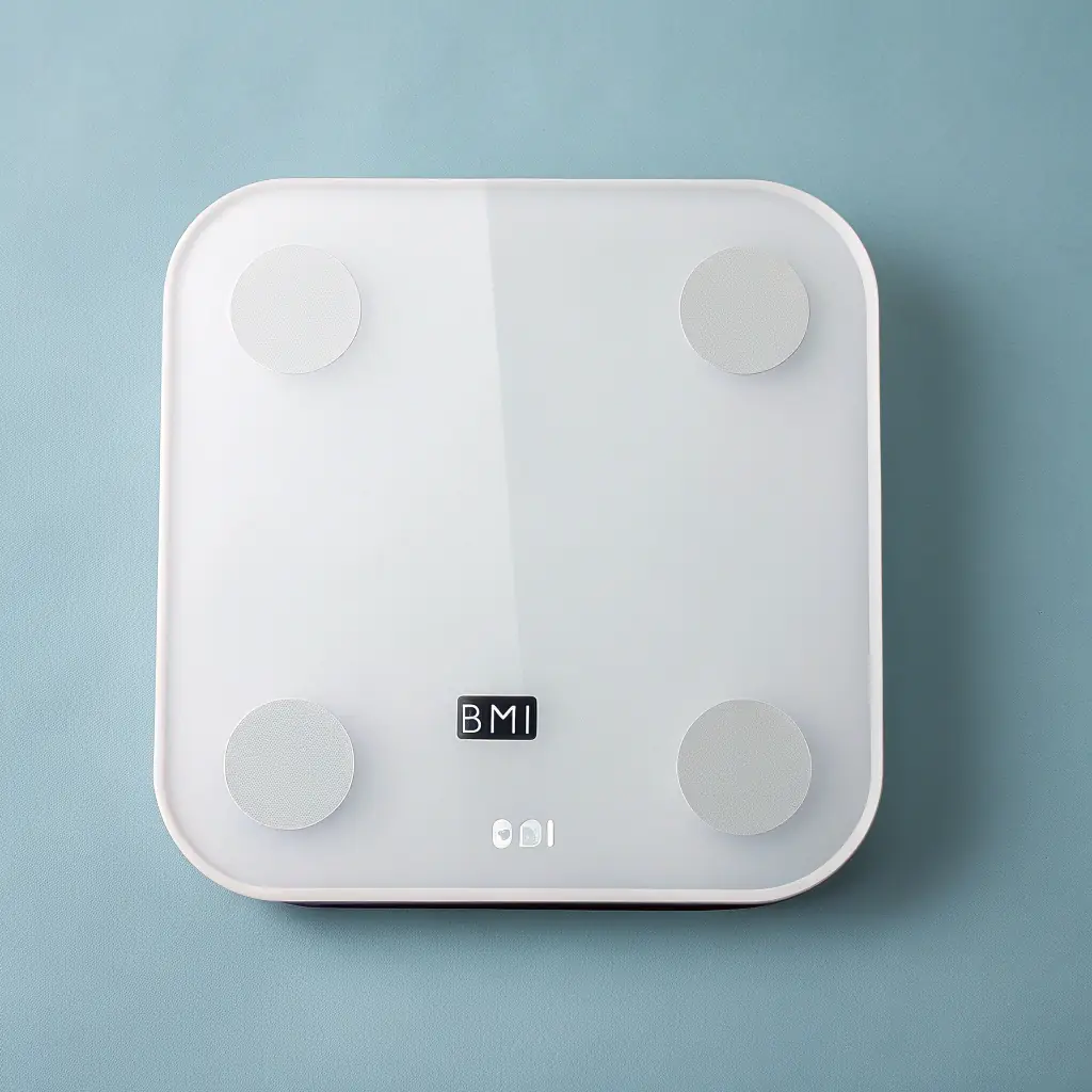 This modern wireless body composition scale features a tempered glass surface with a sleek, minimalist design. It measures weight, body fat percentage, muscle mass, and hydration levels with high precision. The scale connects seamlessly via Bluetooth to mobile apps, providing comprehensive health insights at a glance. Its slim profile and soft LED display make it a stylish addition to any home gym.